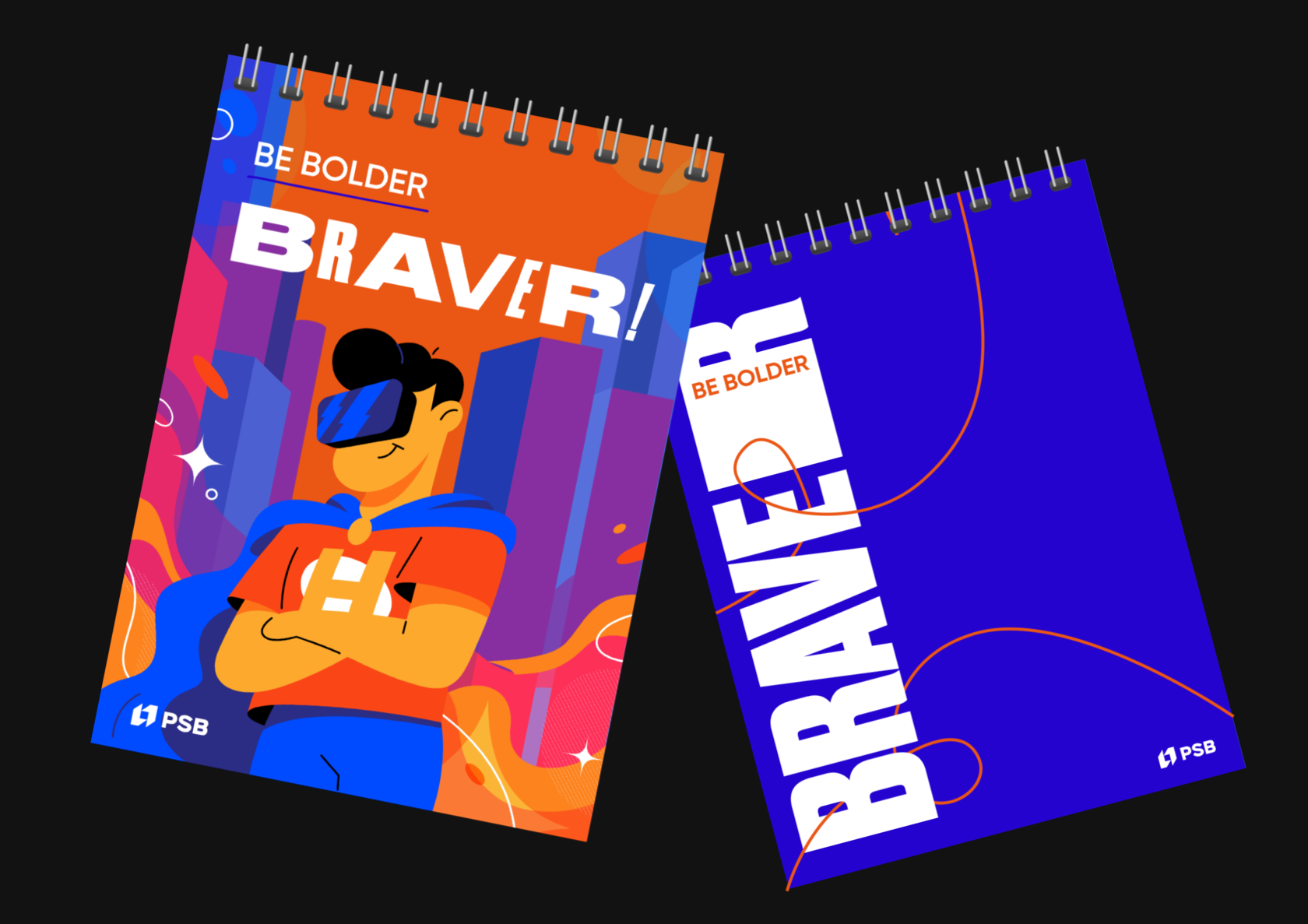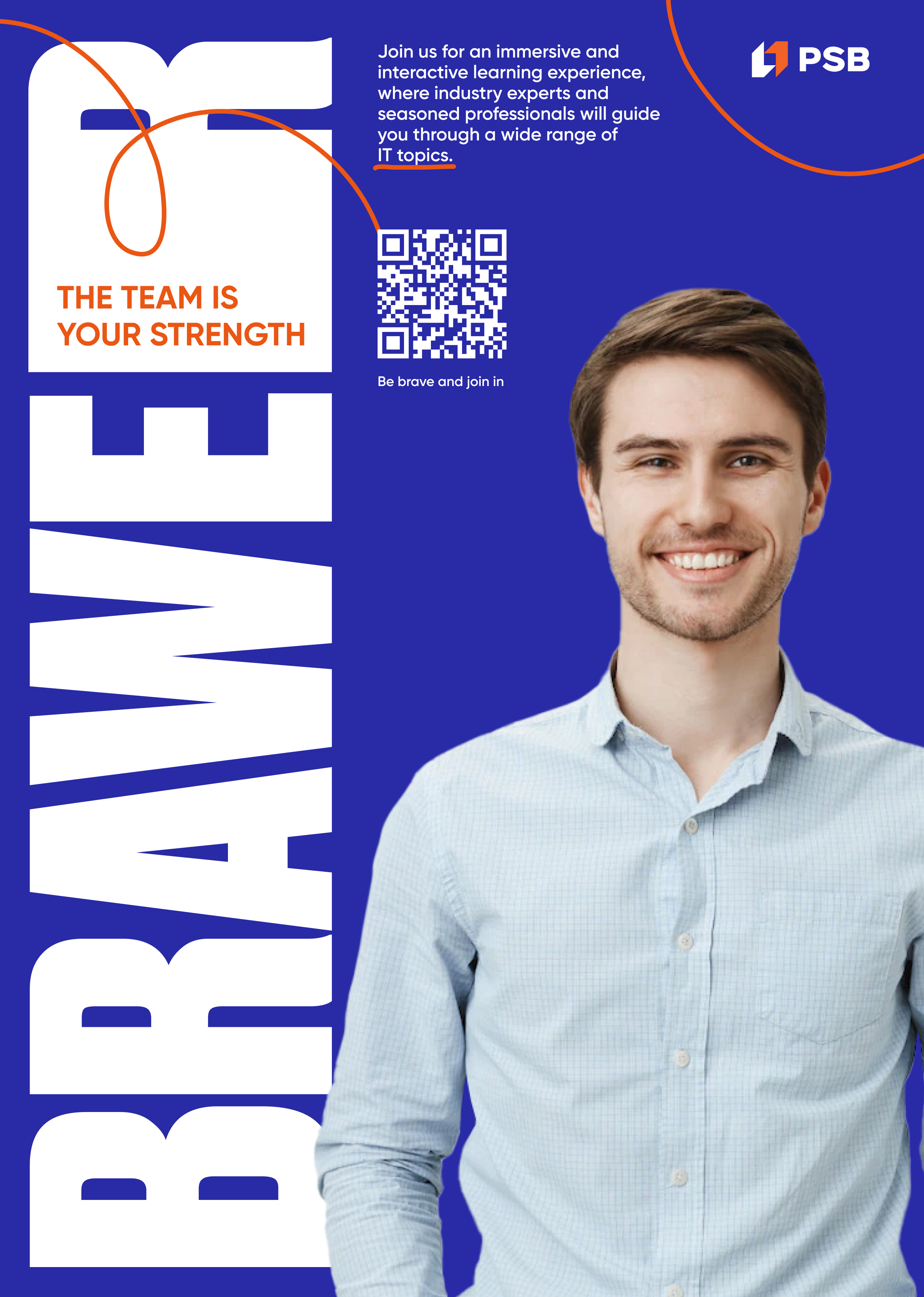 PSB is a bank of strong people. Strength imbues all its products, customers and employees with the energy they need to achieve their goals. To communicate this, we developed an employer brand and revealed PSB's strength through boldness, a quality shared by everyone involved in the bank's development. The aim was to communicate a challenging approach and help PSB attract new young talent, particularly from the IT sector.